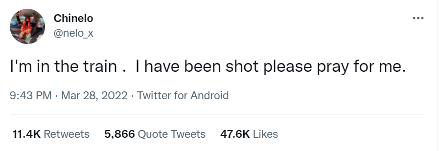 While the violence was ongoing along the train tracks, another battle was raging on Twitter. To start with, pro-government propaganda accounts gleefully denied any suggestion that any train was under attack despite sustained incoming reports. Even when someone on the train tweeted that she had been shot and sought prayers, persons who believe patriotism means disregarding their humanity gathered to make fun of her like a pack of ravenous wolves taunting their prey. As Dr Chinelo’s life drained away, she must have wondered what she had done to deserve so much vitriolic bile from her compatriots. We can never tell what she thought just before she died, but we can be sure that whoever would mock a stranger at point of death is in urgent need of redemption.