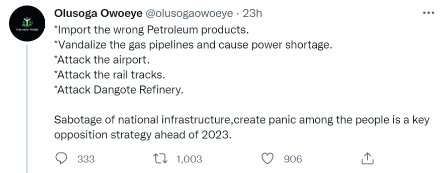 There is yet another group of patriots who absolve the government of any responsibility whatsoever. These ones are adamant that all evils being suffered in Nigeria are due to “the opposition” trying to claim power at the 2023 elections. Apparently, the government has no way of checkmating “sabotage by the opposition”. One of such persons would go as far as suggesting that a government-controlled entity imported substandard petrol as part of a ploy by the opposition to discredit the government. I wonder if anything less potent than the famed blood of Jesus can even attempt to redeem such persons.