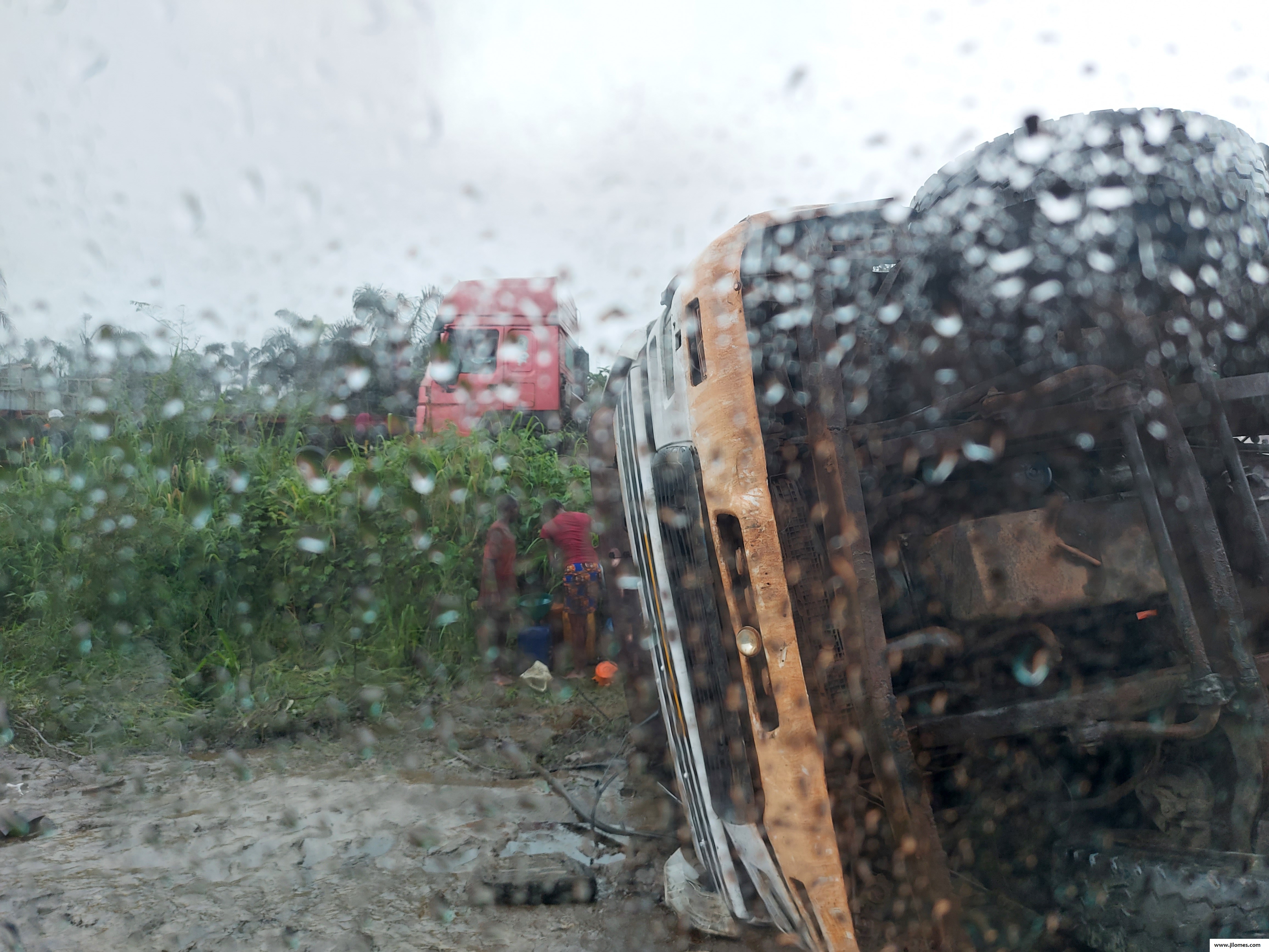 First, we have a tanker laden with diesel lying on its side, further disrupting the flow of traffic on a bad road. This resource-filled tanker on a mission to deliver a needed product to some people had its journey [temporarily] derailed. The driver, seemingly helpless, was nowhere to be found. The police and other agencies who would be expected at such a scene were unavailable. We assumed that the tanker’s fall was orchestrated by the bad road, but there was the possibility that under saner conditions, the tanker and/or its driver might have been deemed unfit to be on the roads.